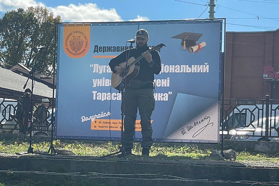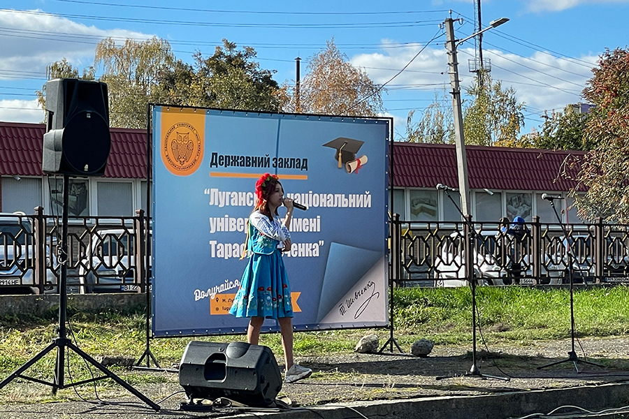 Rector of the university, Doctor of Pedagogical Sciences, Professor Olena Karaman addressed the students, guests and residents with a welcoming speech. The concert program featured Ukrainian songs performed by students and teachers of Luhansk Taras Shevchenko National University. Among the participants of the concert: Yaroslava Tsiulina, a student of the Institute of Culture and Arts; Larisa Borysenko, art and choreography teacher, soloist of the Poltava Philharmonic; first-year students: Ania Avvakumova, Daria Potapenko, Tetiana Protsenko; as well as a guest musician, participant of the TV show "Voice of the Country", military serviceman David Maksaka.