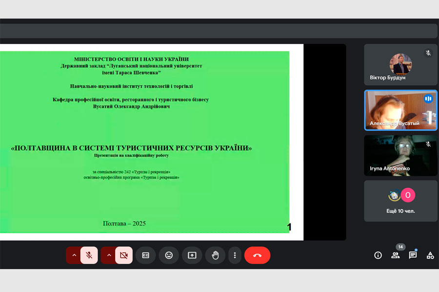 The students presented the results of scientific research on the following issues: development of tourism at the national and regional levels, including in the Poltava region during the war and post-war periods; development of the infrastructure of the tourism and hotel business in various regions of Ukraine; accessibility of services in hotel and restaurant and tourism business establishments for guests with disabilities; development of a strategy for environmentally responsible development of the hotel and restaurant business; integration of social responsibility into the management of the hotel and restaurant business and other strategic areas of development and management of enterprises in the tourism and recreation sector as well as hotel and restaurant business.