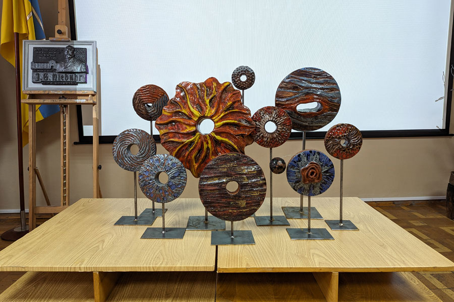 Vladyslav Kyrpa's ceramic plaque entitled "Hero", dedicated to the life and work of the German Jacob Niebuhr, who, according to one version, was the founder of the Ukrainian city of New York, and Natalia Kon's symbolic work - "Arkan" - a dance to victory, attracted the attention of all present.