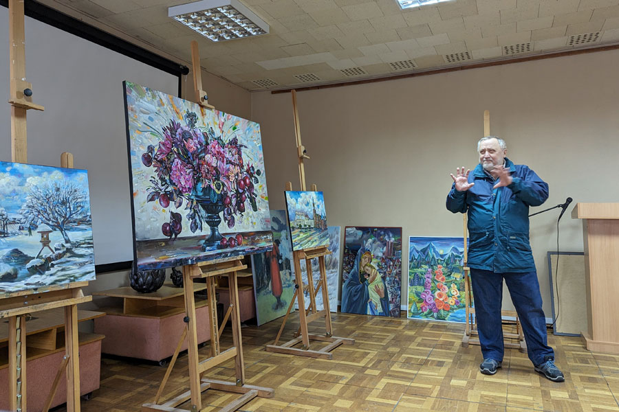 The master's students surprised by the variety of techniques and types of art including picturesque still life, works on historical themes, modern symbolism, landscapes, a hunting scene, ceramic compositions, and metal welding.