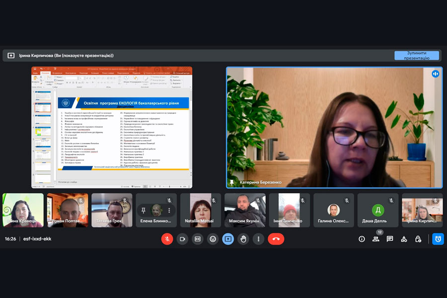 During the meeting, important issues regarding the improvement of the content and structure of educational programs based on the competence approach, the content and sequence of studying educational components at the first and second level of higher education were discussed. The results of the survey of students, employers and graduates and their proposals were considered. The members of the project groups reached a conclusion regarding the expansion of the list of professional training disciplines aimed at deepening knowledge on establishing and overcoming the consequences of environmental destruction caused by war.