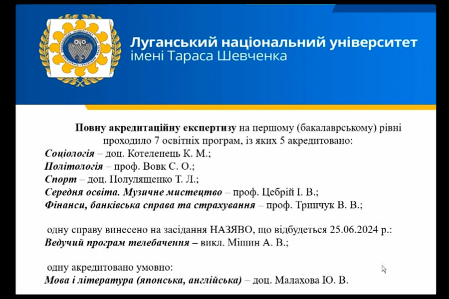 about the results of accreditation of educational programs in 2023-2024 and ways of improving the internal system of ensuring the quality of education;