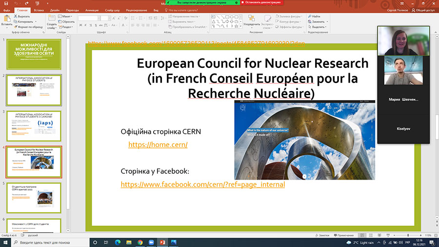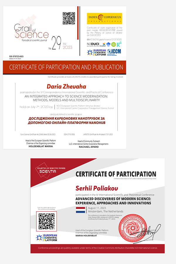 Teachers of the Department Mathematics and Informatics raise the level of qualification in the leading research institutions of Ukraine and Europe. They actively cooperate with the N.S. Polyakov Institute of Geotechnical Mechanics of the National Academy of Sciences of Ukraine, the Zaporizhzhia National University, Kyiv National University of Construction and Architecture, European Center for Nuclear Research (CERN, Geneva).