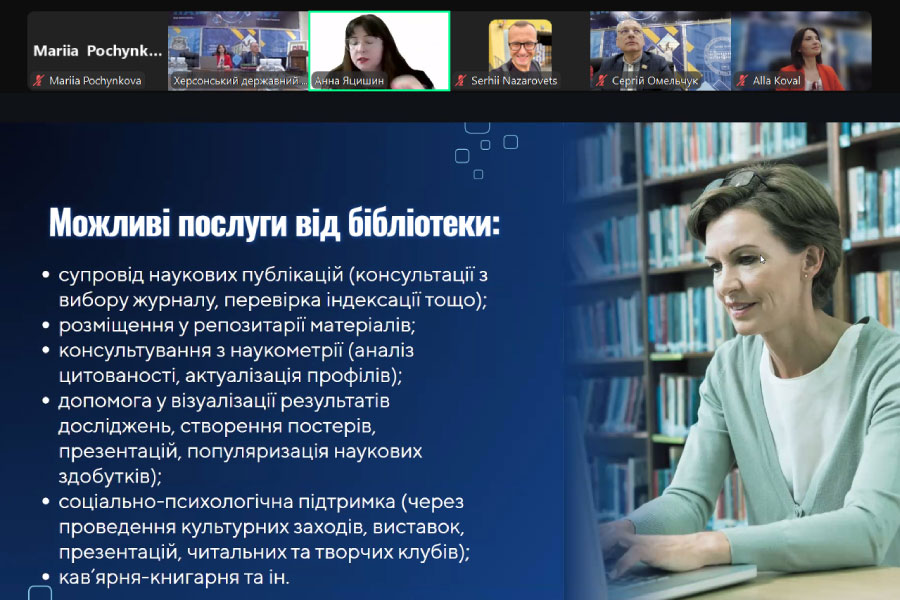 Своїм досвідом роботи під час вимушеного переміщення поділились Коваль Алла, директорка наукової бібліотеки Херсонського державного університету «Вимушена трансформація — внутрішня сила: наукова бібліотека ХДУ в умовах війни»; Ольга Білоцька, директорка наукової бібліотеки Таврійського державного агротехнологічного університету імені Дмитра Моторного «Наукова бібліотека ТДАТУ в реаліях переміщеного університету і повномасштабної війни».