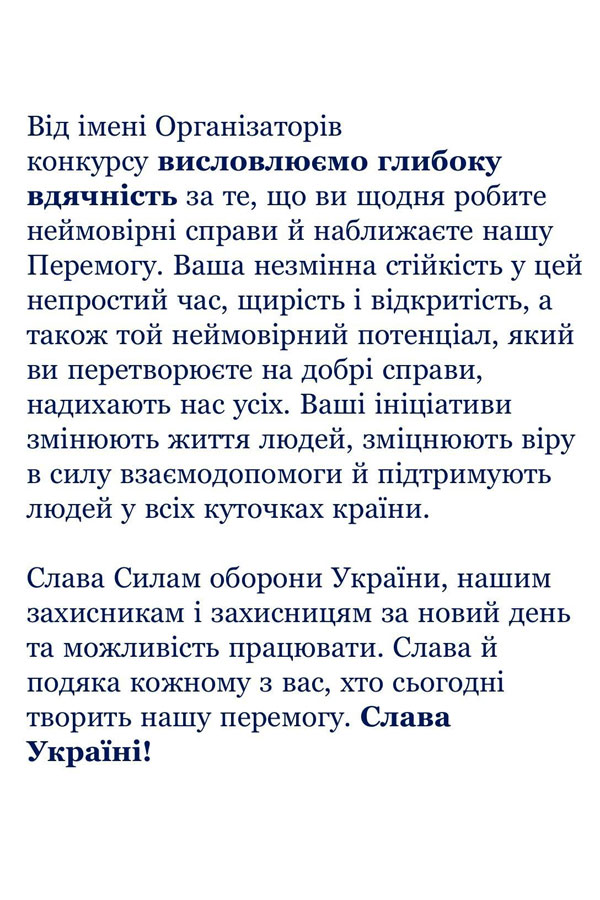 ВП «Регіональний центр професійної освіти» також отримали лист-подяку від організаторів конкурсу за внесок у розвиток благодійності та добрі справи, що наближають перемогу України.