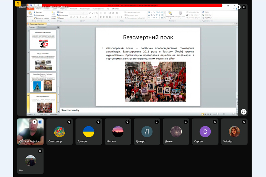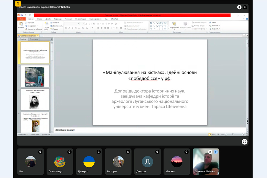 Автором тематичної зустрічі виступив д.і.н., професор, завідувач кафедри історії та археології Олександр Набока. Зосередившись на висвітленні подій родинної історії, пов’язаної з подіями Другої світової війни (1939 – 1941), доповідач відзначив, що з ранішнього дитинства відчував повагу до рідних, які свого часу брали активну участь у буремних військових подіях. За його словами, останні роки війни із росією дозволили зрозуміти предків, які переживали схожі відчуття страху, невизначеності та жаху перед страшними подіями.