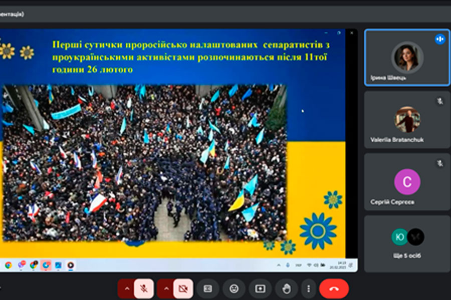 Під час заходу була продемонстрована добірка відеоматеріалів і документальних фільмів, що висвітлюють події 2014 року та їхній вплив на сучасність.