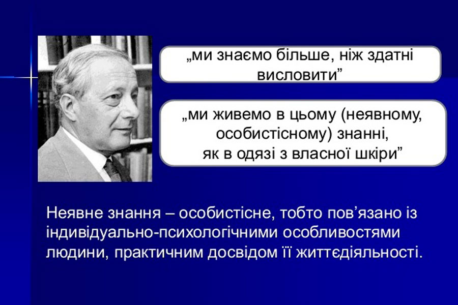 25 квітня для магістрантів та аспірантів спеціальності 011 Освітні, педагогічні науки, викладачів ННІПП було проведено вебінар «Неявне знання в педагогічній та науковій діяльності сучасного викладача». Акцентовано увагу на концепції особистісного знання М. Полані, особливостях неявного знання в педагогічній практиці (контекст, прихована програма (Hidden Curriculum), досвід педагога, інтуїція, особистісний приклад та ін.), неявному знанні у науковій сфері (досвід пізнавальної діяльності, традиції наукової школи, інтуїція та ін.).