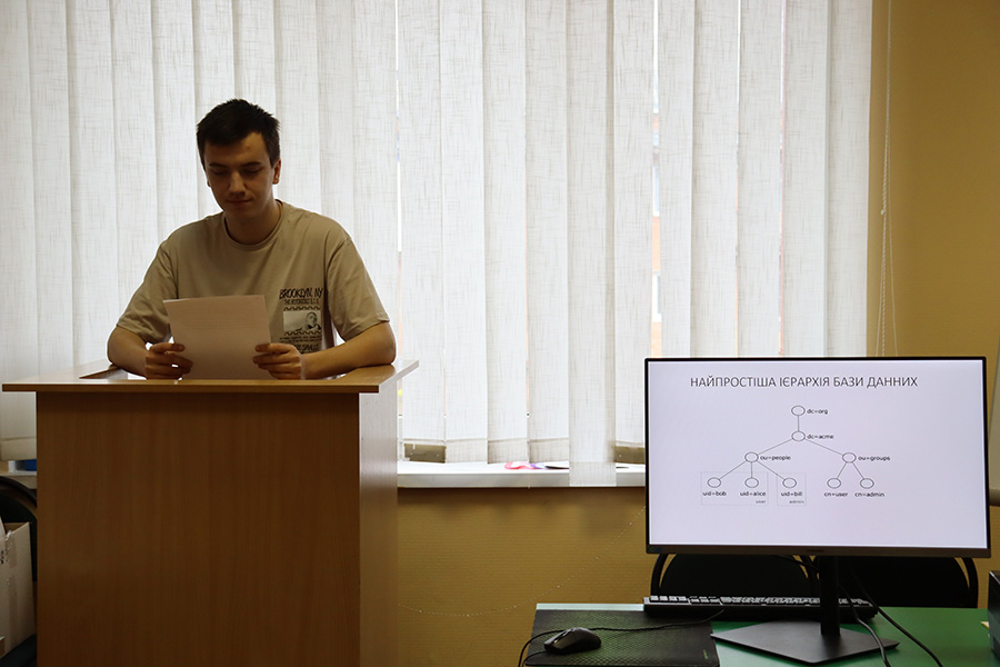 Клопов Дмитро Романович, здобувач освіти 4 курсу, рівень бакалавр, спеціальність «Інженерія програмного забезпечення»: ВИКОРИСТАННЯ ПРОТОКОЛУ LDAP ДЛЯ ДОСТУПУ ДО LMS MOODLE. Керівник ‒ завідувач кафедри ІТС, к.п.н. Микола Семенов.