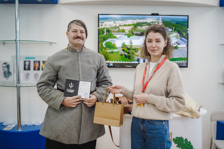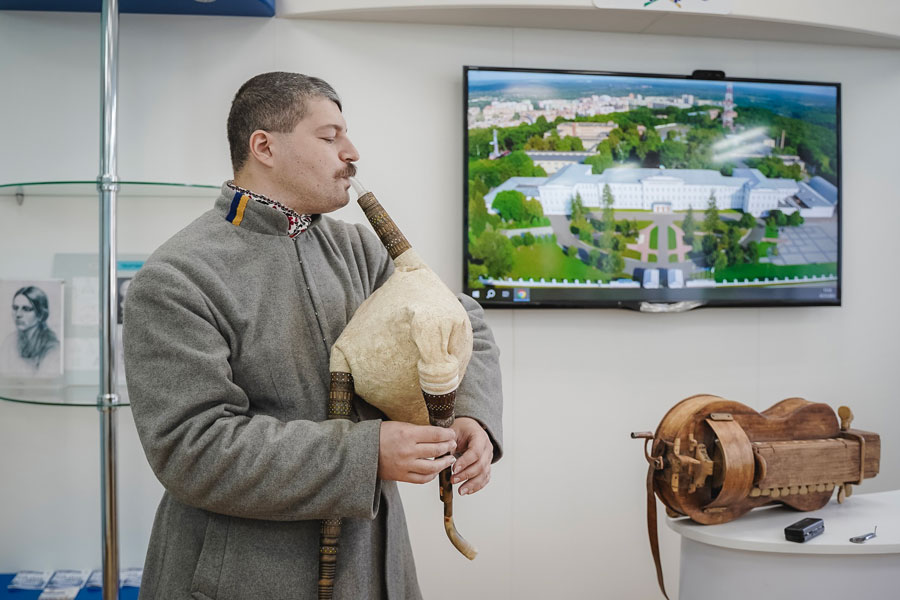 Participants of the military culture forum "Steel Word" had the opportunity to listen to the lecture "Ukrainian folk instruments in the context of the armed defense of Ukraine as a cultural front against the enemy." It was given by Nazar Bozhinskyi, candidate of architecture, associate professor of the Design Department of the Educational and Research Institute of Arts of LTSNU.