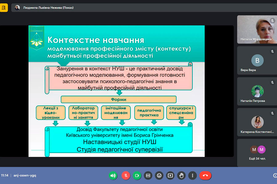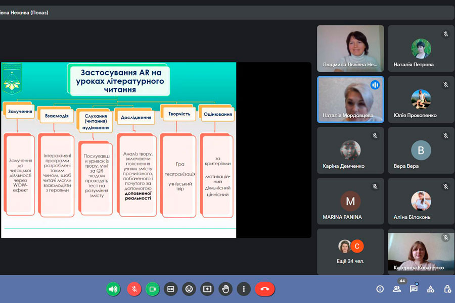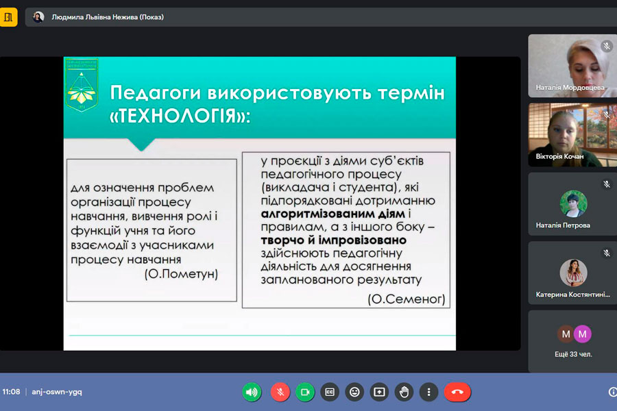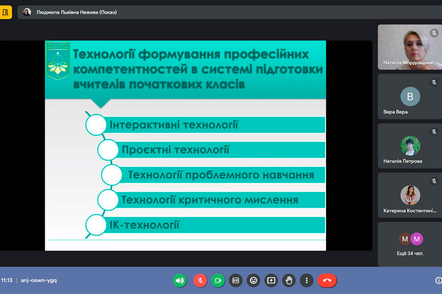 Під час лекції Нежива Л. розповіла про технології формування професійних компетентностей в системі підготовки вчителів початкових класів, серед яких виділила контекстне навчання, використання ІК технологій, застосування АR на уроках літературного читання тощо.