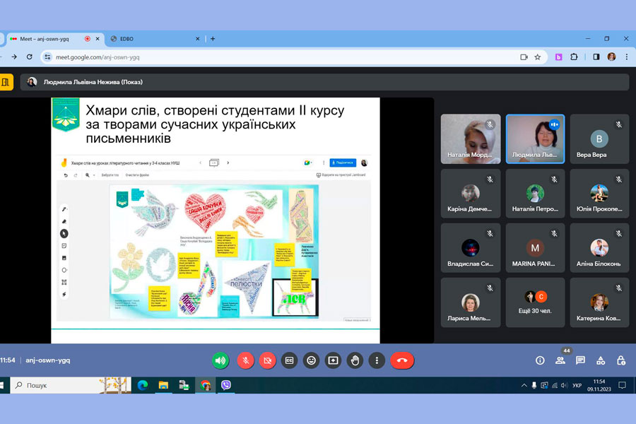 Розмова була присвячена сучасним технологіям в системі мовно-літературної освіти майбутніх учителів початкових класів. Лекторка у цікавій, візуалізованій формі презентувала різноманітні інтерактивні інструменти, які на сьогодні, в умовах змішаного навчання, набувають особливого значення для спонукання і позитивної мотивації здобувачів освіти опановувати освітні компоненти філологічного циклу.
