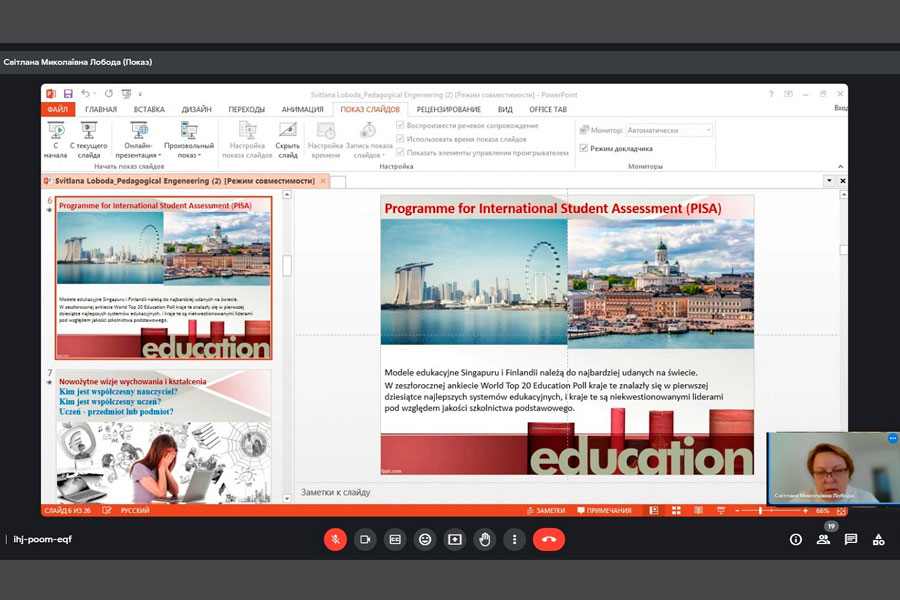 Здобувачі та викладачі кафедри педагогіки відвідали гостьову лекцію Світлани ЛОБОДИ, доктора габілітованого, професора, професора кафедри педагогіки Інституту соціальних наук та педагогіки Університету сільського господарства (м. Варшава, Республіка Польща). Тема лекції «Викладач закладу вищої освіти в сучасному мінливому світі». Модератором зустрічі виступила гарант освітньої програми «Педагогіка вищої школи» Людмила БУТЕНКО, доктор педагогічних наук, доцент, завідувач кафедри педагогіки.