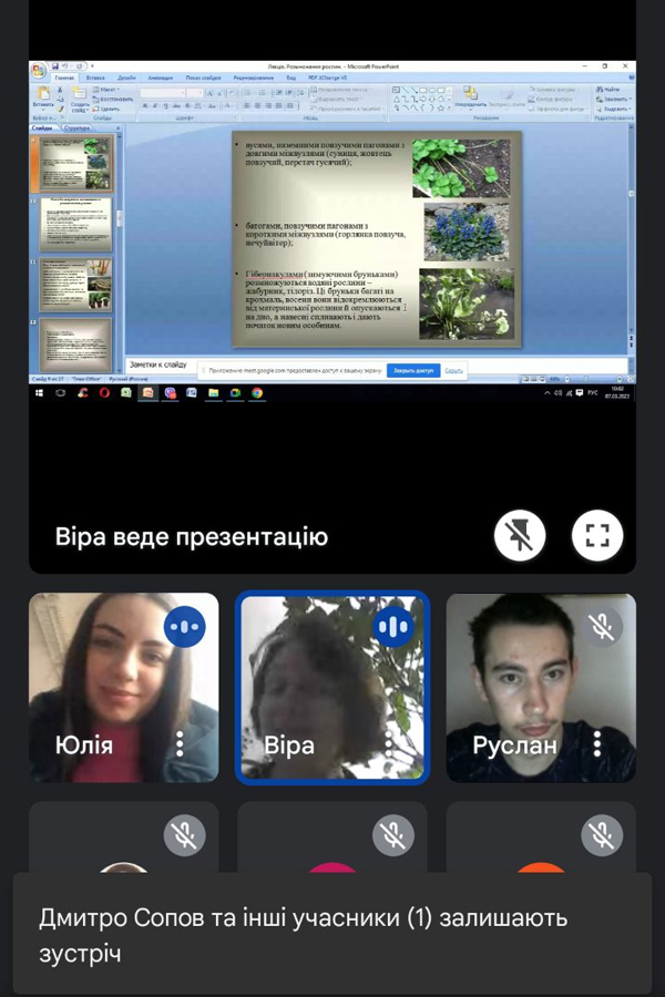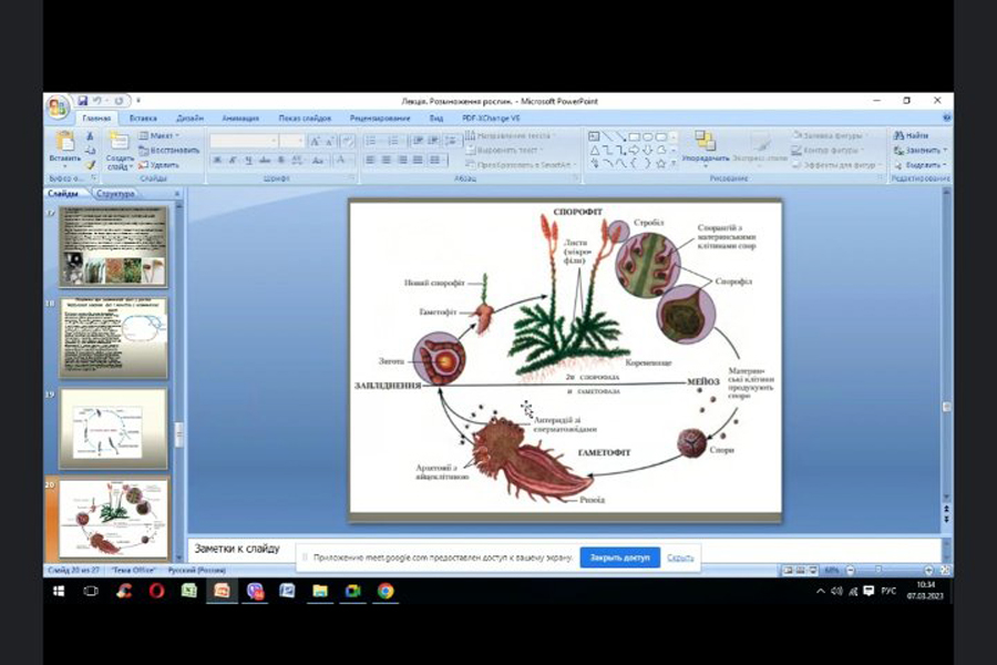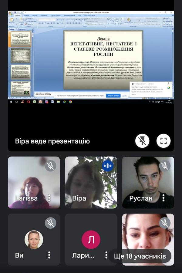 Лекція Миколайчук В.Г. відзначалася високим рівнем викладення матеріалу, була насичена цікавими прикладами та фактами про життєві цикли та способи розмноження рослин різних систематичних груп і супроводжувалася презентацією. Періодично виникала жвава дискусія між викладачем та здобувачами освіти з приводу обговорення матеріалу.