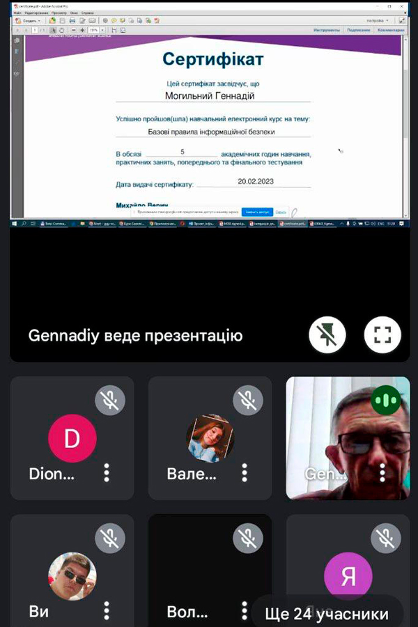 На зустрічі спікер зазначив, що основною метою курсу є підвищення рівня обізнаності здобувачів освіти щодо основних правил безпеки в цифровому середовищі, адже знання основ кібербезпеки та кібергігієни в сучасних умовах є актуальними для всіх учасників освітнього процесу, особливо в умовах воєнного стану.