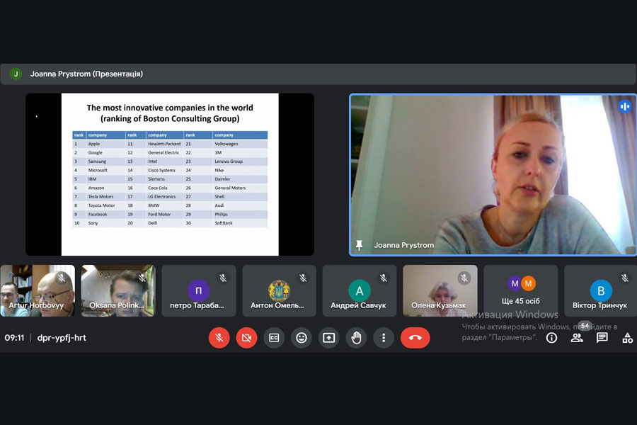 Особлива увага була приділена аналізу кейсів успішних інноваційних проектів, що дозволило учасникам краще зрозуміти механізми впровадження та масштабування інновацій у бізнесі.