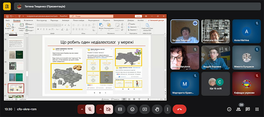 Захід відбувся на платформі Google Meet, що дало змогу об’єднати всіх, кого цікавлять питання розвитку сучасної діалектологічної науки.
