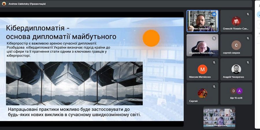 Андрій Валерійович звернув увагу на те, що взаємопов'язаність нашого світу робить нас вразливими, зокрема у сфері зовнішніх зносин. Саме тому потужна дипломатична робота МЗС України сьогодні спрямована на розбудову стабільного та безпечного кіберпростору в дипломатичній сфері. А кібердипломатія є важливим інструментом підтримки стабільності, безпеки та співпраці між державами. Зустріч була цікавою та корисною.