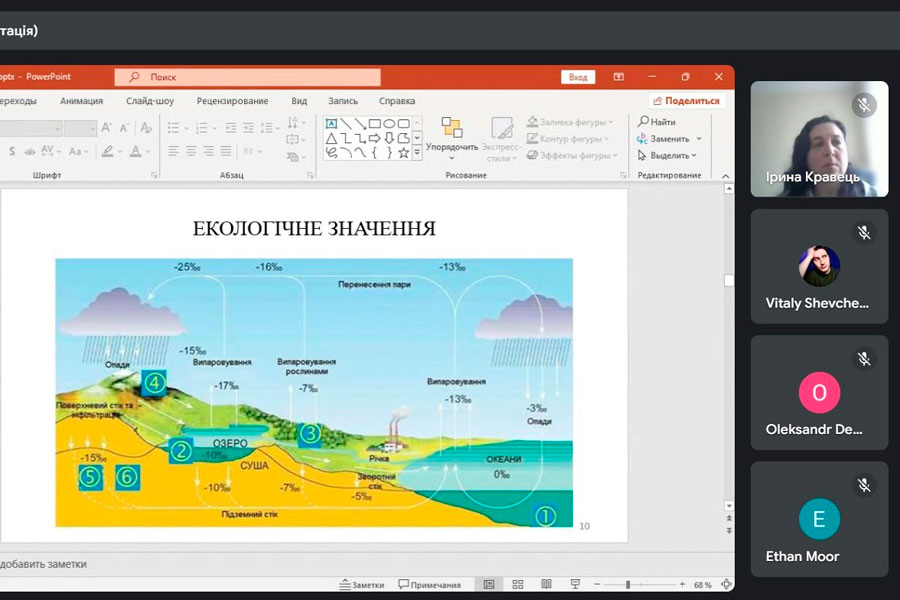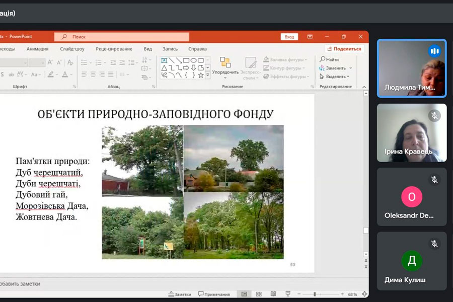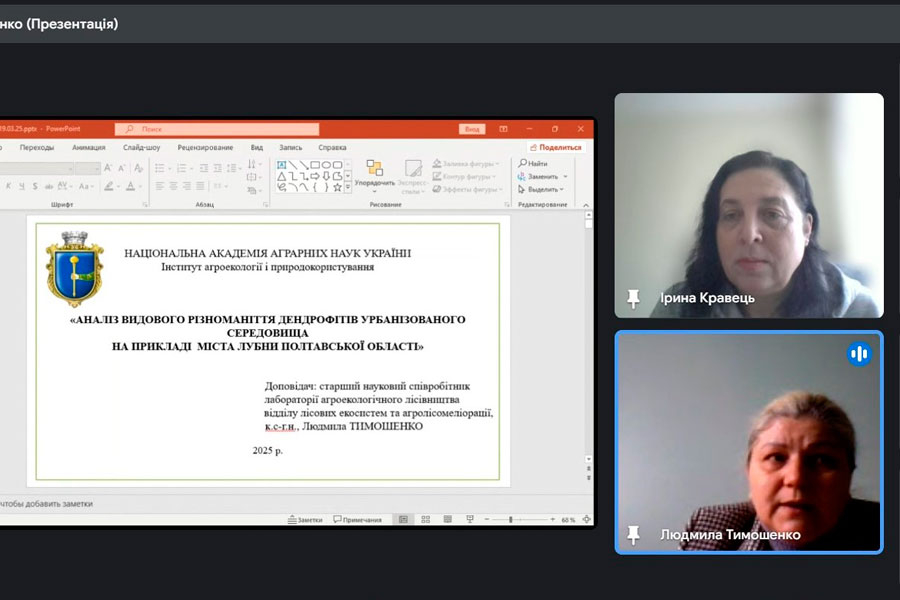 Лектором виступила Людмила ТИМОШЕНКО, кандидат сільськогосподарських наук, старший науковий співробітник лабораторії агроекологічного лісівництва відділу лісових екосистем та агролісомеліорації Інституту агроекології та природокористування НААН України. Під час презентації пані Людмила представила результати досліджень, спрямованих на вивчення видового різноманіття деревних та чагарникових рослин у міському середовищі, зокрема в місті Лубни. Пані Людмила розкрила ключові аспекти впливу природних та антропогенних чинників на стан дендрофітів у містах. Вона підкреслила, що кліматичні умови, ґрунтові та гідрологічні фактори, а також забруднення повітря, урбанізація та рекреаційне навантаження значно впливають на життєздатність та розвиток міських зелених насаджень.