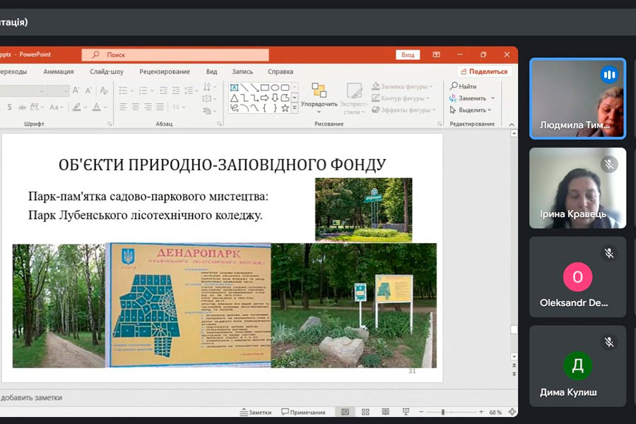 Під час лекції було представлено результати досліджень, проведених у місті Лубни, де вивчалися такі аспекти, як таксономічний склад, вікова структура, декоративність та життєздатність дендрофітів. Пані Людмила наголосила на важливості збереження та розширення асортименту деревних та чагарникових рослин для міського озеленення, запропонувавши нові види та сорти, які можуть бути використані для формування магістральних насаджень.