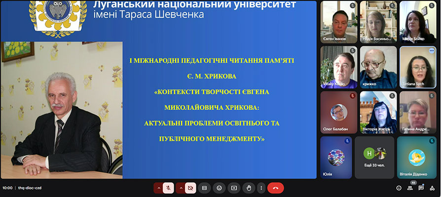3 квітня 2025 року в навчально-науковому інституті публічного управління і післядипломної освіти відбулась визначна подія – І Міжнародні педагогічні читання пам’яті Євгена Миколайовича Хрикова «Контексти творчості Євгена Миколайовича Хрикова: актуальні проблеми освітнього і публічного менеджменту».