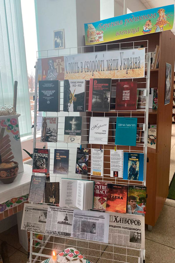 Бібліотекар Наталія Шостак розповіла про хронологію голодоморів 1921-1923 рр, 1932-1933 рр, 1946-1947 рр. та запропонувала переглянути здобувачам буктрейлер до роману «Жовтий Князь» (1958—1961) В. Барки. Це перший в українській літературі прозовий твір, присвячений національній трагедії України — страшному голодомору 1932—1933 років, що забрав життя мільйонів людей. Письменник створює символічний образ Жовтого князя, демона зла, який несе з собою лише руйнування, спустошення, муки і смерть. У романі детально вiдтворено всi подробицi лихолiття, пережитi нашим народом i особисто письменником. Головна частина у творi − це власнi спостереження i враження, які закарбувались у пам'ятi письменника.
