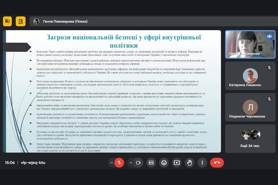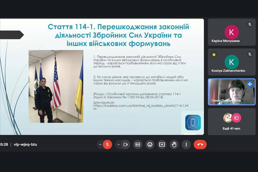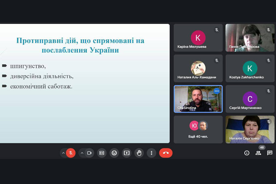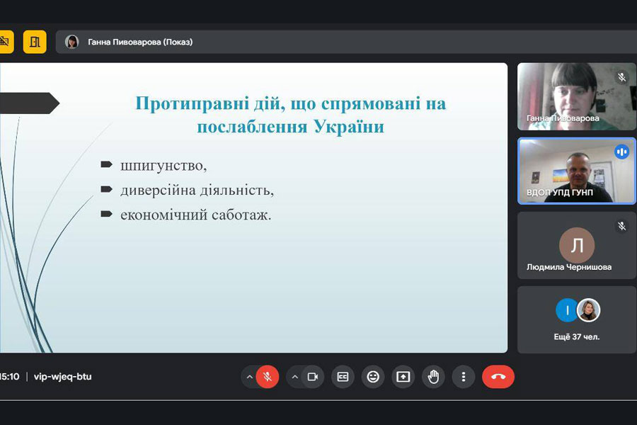 Захід розпочався зі вступної лекції, де студенти ознайомилися із загрозами, що стоять перед Україною в умовах війни та інформаційної агресії. Особливу увагу було приділено темам державної зради, шпигунства, диверсій та економічного саботажу. Викладачі роз’яснили правові наслідки таких дій відповідно до Кримінального кодексу України, наголосивши на тому, що участь у подібних діях несе серйозну відповідальність.