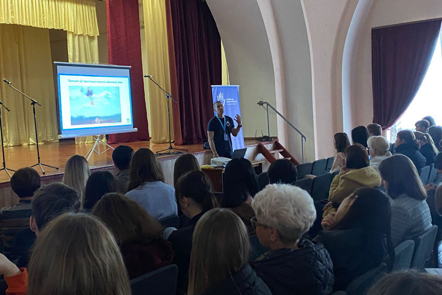 Фахівці розповіли студентам про те, де можна потрапити на небезпечну знахідку. А це може статися будь де: на вулицях, дитячих майданчиках, у покинутих будинках, зруйнованих будівлях, на заміському відкритому просторі (у водоймах, лісах, полях, на узбіччях доріг) та ін.