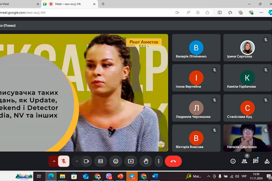 Також Ірина Юріївна познайомила присутніх з журналістською діяльністю, студентки 4 курсу, спеціальності Журналістика Татаренко Анастасії, яка працює в ГО регіонального медіа “ЗМІСТ”, м. Полтава. розповіла про особливості роботи у сфері журналістики, з позитивним та негативними моментами, а також перспективами особистого розвитку.