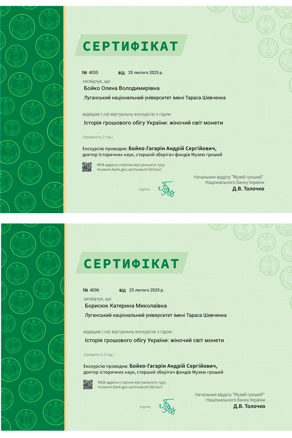 Ознайомлення з історією, дизайном, символікою монет, присвячених жінкам та жіночим образам дало можливість глибше усвідомити роль жінки в історії та культурі різних народів світу. Участь у такому заході стала цінним інструментом підвищення кваліфікації викладачів. Отримані знання дозволяють тематично розширити програми освітніх компонентів «Історія фінансової справи», «Фінанси» та «Гроші та кредит», доповнивши їх цікавими історичними фактами та розглядати гроші не лише як платіжний засіб, а й як культурний та соціальний феномен. Це сприятиме формуванню у здобувачів критичного мислення, розуміння еволюції грошового обігу та його зв’язку з суспільними процесами. Ця екскурсія надихнула нас створити новий модуль – «Жінки в історії фінансів». Тепер здобувачі зможуть бачити, що економіка – це не тільки цифри, а й живі історії!
