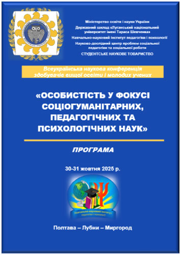 30–31 жовтня 2025 року у Державному закладі «Луганський національний університет імені Тараса Шевченка» відбулася ІV Всеукраїнська наукова конференція здобувачів вищої освіти та молодих учених «Особистість у фокусі соціогуманітарних, педагогічних та психологічних наук».