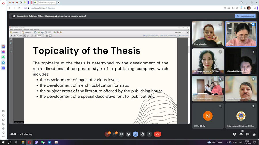 01.2024: Ню Я – магістрантка освітньої програми Графічний дизайн спеціальності 022 Дизайн. Тема магістерського дослідження «Розробка фірмового стилю видавництва» (науковий керівник – кандидат архітектури, доцент кафедри дизайну Назар БОЖИНСЬКИЙ);
