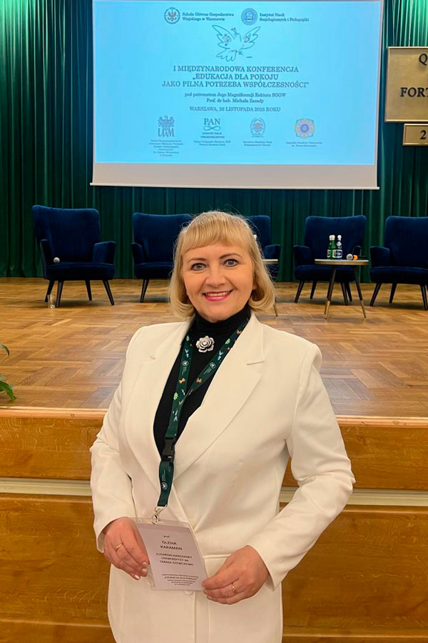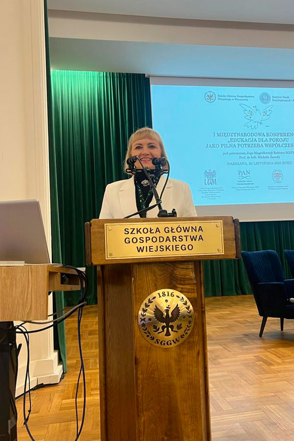 взяла участь у I Міжнародній конференції «Освіта для миру як нагальна потреба сучасності», що проходила на базі Університету Сільського Господарства у Варшаві (SGGW) під патронатом Його Високоповажності Ректора SGGW, професора габілітованого Міхала Засади (м.Варшава, Польща).