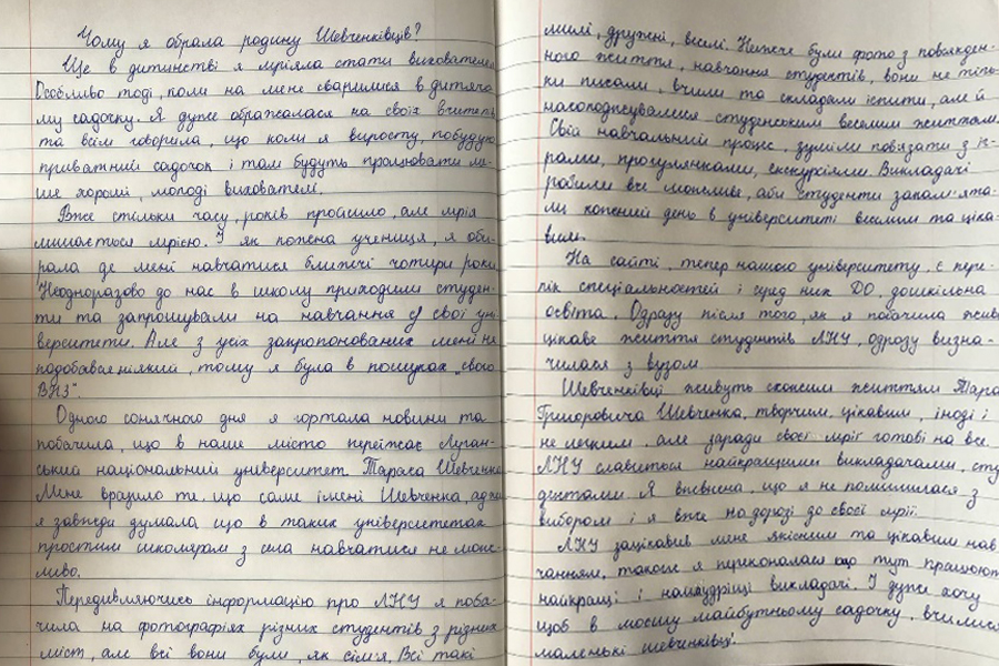 До святкової дати 102 річниці від дня заснування Луганського національного університету імені Тараса Шевченка здобувачі першого курсу спеціальності 012 «Дошкільна освіта» взяли участь у конкурсі есе «Чому я обрав родину Шевченківців?».