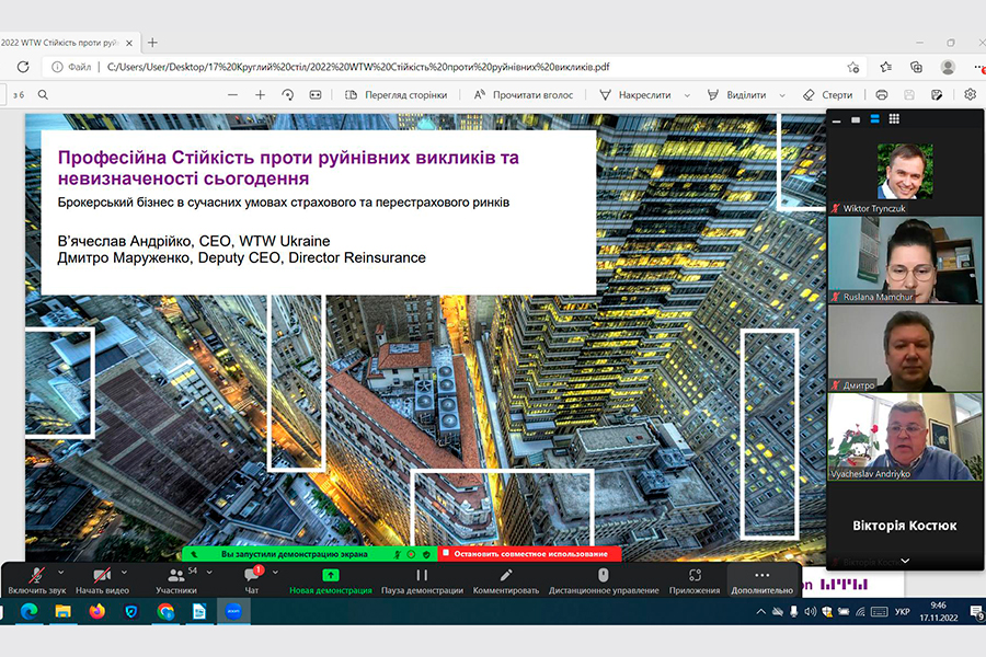 Жваву дискусію викликала доповідь на тему «Робота страхових і перестрахових брокерів України в поточних умовах» В'ячеслава Андрійко - генерального директора та Дмитра Маруженка - заступник генерального директора Представництва Willis Towers Watson Insurance Broking. Доповідачі акцентували увагу присутніх на дев’яти макро- та мікропроблемах страхового ринку України та перспективах їх вирішення. Основні серед яких: складний регуляторний стан, інфляційні зміни страхової вартості, жорсткі вимоги до платоспроможності, зростання страхових тарифів та підвищення якості надання страхових послуг.