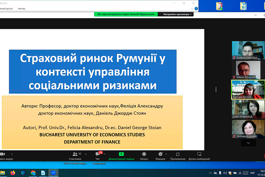 Фелічія Александру, д.е.н., професор Бухарестського університету економічних наук та Георг Стоян, д.е.н., професор Бухарестського університету економічних наук запропонували до обговорення доповідь на тему «Страховий ринок Румунії у контексті управління соціальними ризиками». Доповідь румунських колег була присвячена еволюції румунського страхового ринку, зокрема озвучено критичні моменти, які пройшов румунський ринок страхування.