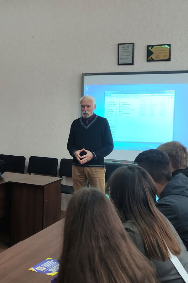 Лектор розповідав про тонкощі знімального процесу – від ідеї до монтажу готового матеріалу. Студентам був продемонстрований документальний фільм, на прикладі якого розбиралась режисерська і операторська робота.