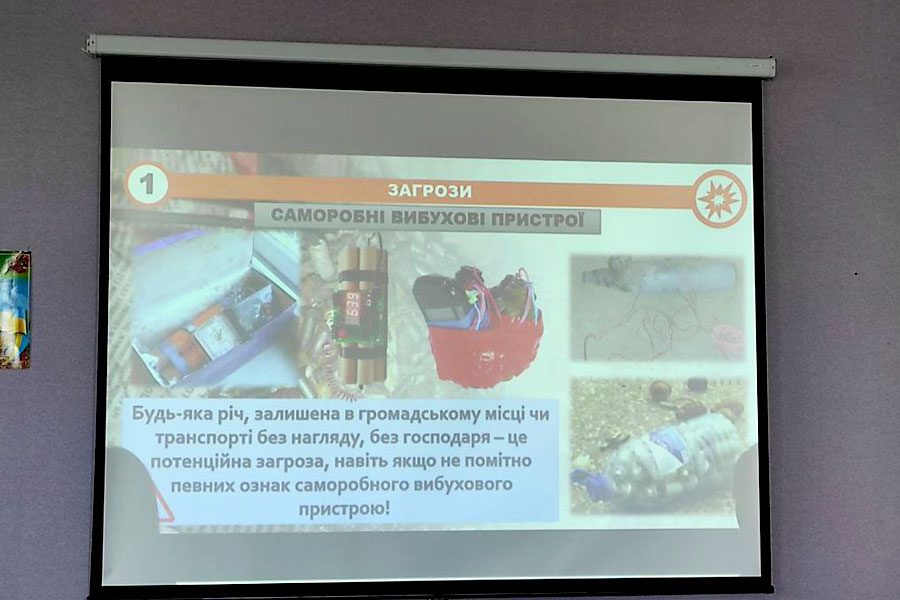 Під час лекції були розглянуті ключові аспекти, які допоможуть уникнути небезпек при повітряній тривозі, раптовому обстрілі, евакуації, виявленні вибухонебезпечних предметів тощо. Присутні розуміли, які загрози існують в нашій області та в інших регіонах України. Зрозуміли, що будь-яка річ, залишена в громадському місці чи транспорті без нагляду, без господаря – це потенційна загроза, навіть якщо не помітно певних ознак саморобного вибухового пристрою. Навчились, як підготувати житло під час нападу та бомбардування та розпізнавати вибухові рештки мін та боєприпасів, що залишаються в місцях бойових дій, які є дуже небезпечні. Ознайомились з різними небезпечними предметами та діями при їх виявленні. Запам’ятали три золотих правила: