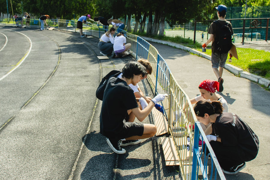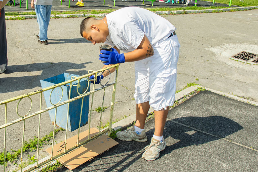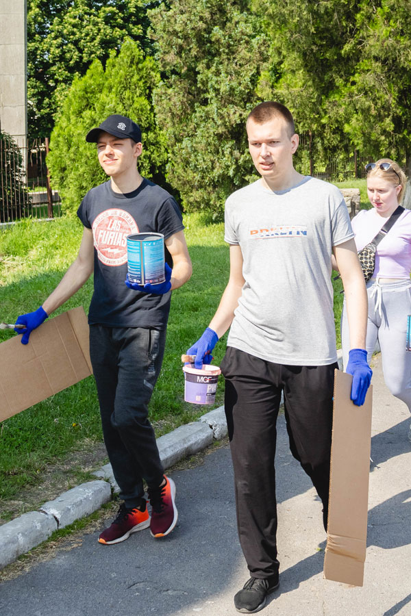 Упродовж дня здобувачі освіти з різних навчальних підрозділів університету — інститутів та коледжів — під керівництвом голови Первинної профспілкової організації ЛНУ Володимира МОРОЗА активно працювали над оновленням огорожі стадіону. Молодь старанно фарбувала конструкції в патріотичні жовто-блакитні кольори, вкладаючи у кожен мазок частинку своєї любові до України та поваги до громади, яка гостинно приймає університет на своїй землі.