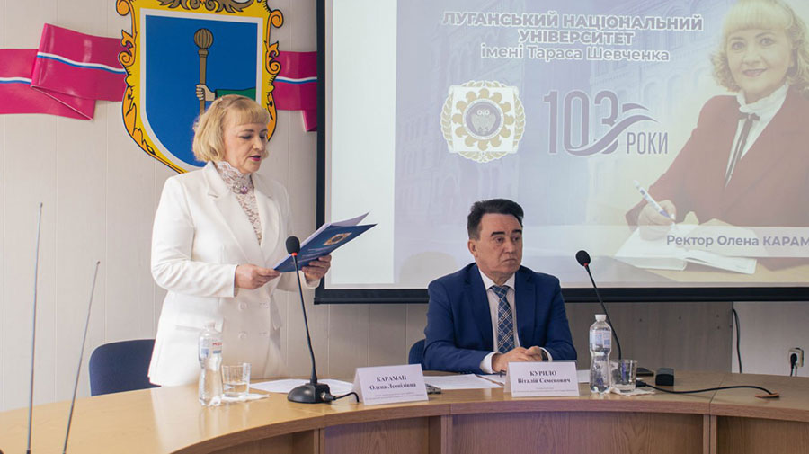Урочисте засідання вченої ради Луганського національного університету імені Тараса Шевченка провів голова вченої ради, перший проректор, академік Національної академії педагогічних наук України, доктор педагогічних наук, професор Віталій КУРИЛО, на якому присутні заслухали його доповідь та доповідь ректорки університету, доктора педагогічних наук, професора Олени КАРАМАН, в яких прозвучала інформація про історичне минуле та сьогодення навчального закладу, про великі втрати і нові здобутки.