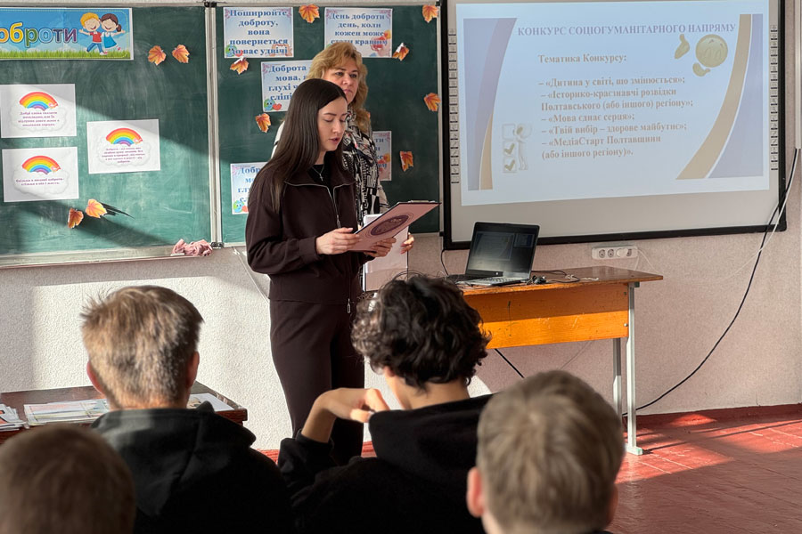 Після цього маркетинговий відділ провів зустрічі зі старшокласниками Петрівцівської гімназії Миргородської міської ради та Опорного закладу освіти «Трудолюбівська гімназія ММР». Під час заходів учням 10–11 класів презентували умови участі у Всеукраїнському марафоні професійно зорієнтованих конкурсів «Я обираю своє майбутнє», ознайомили з трьома його напрямами — соціогуманітарним, економіко-технологічним та природничим, — та пояснили, у який спосіб кожен може проявити свої здібності.