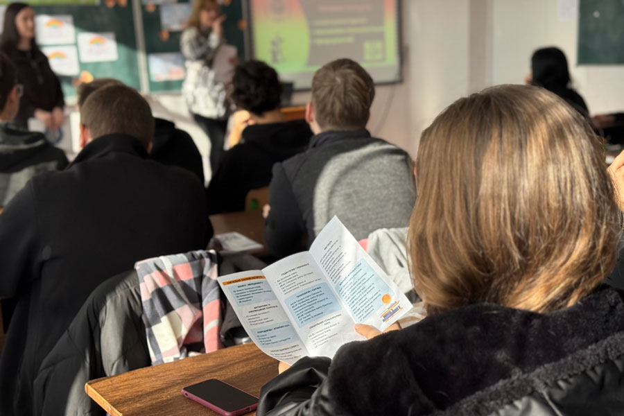 Представниці ЛНУ детально розповіли про навчально-наукові інститути університету, їхні спеціальності й можливості для абітурієнтів. Окремо наголосили на перевагах участі у Марафоні для закладів освіти, старшокласників та їх керівників: сертифікатах, нагородах, призах, відзначенні закладів середньої освіти та ваучерах на знижку в оплаті навчання для переможців. Учні активно долучалися до розмови, ставили питання про умови конкурсу та перспективи вступу, отримуючи вичерпні відповіді.