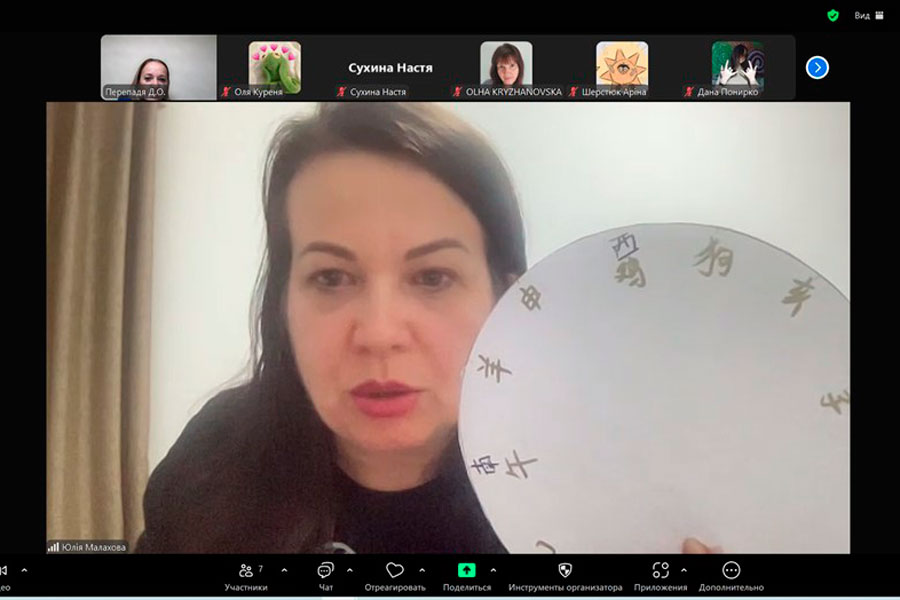 Далі розпочалася практична робота: пані Юлія запропонувала власноруч виготувати вічний годинник з китайським гороскопом. Всі бажаючі могли створити свій власний виріб оріґамі, користуючись японськими ієрогліфами, китайськими циклічними знаками або намалювати тварин.