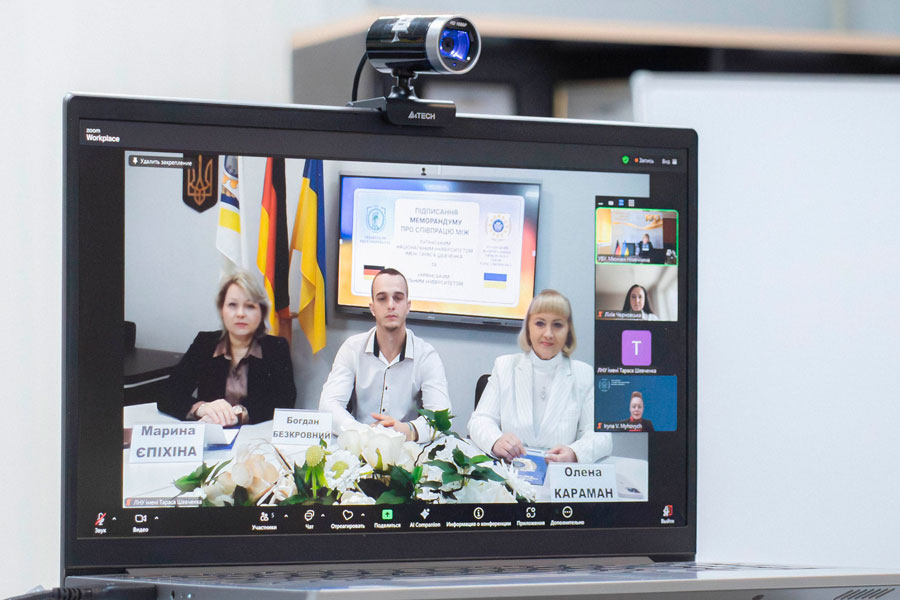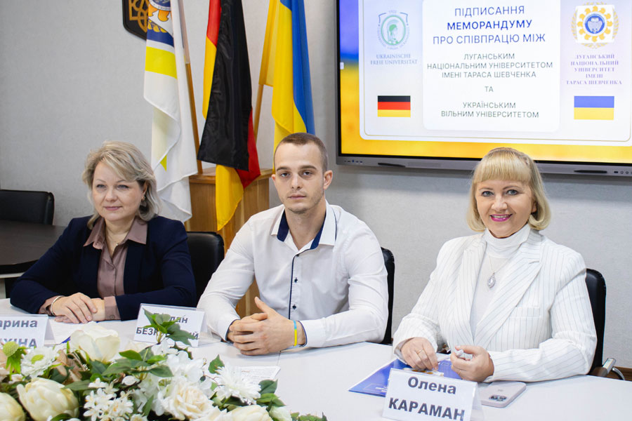 8 жовтня 2025 року в Луганському національному університеті імені Тараса Шевченка відбулася урочиста онлайн-подія — підписання Меморандуму про співпрацю між Державним закладом «Луганський національний університет імені Тараса Шевченка» та Українським Вільним Університетом міста Мюнхен (Німеччина).