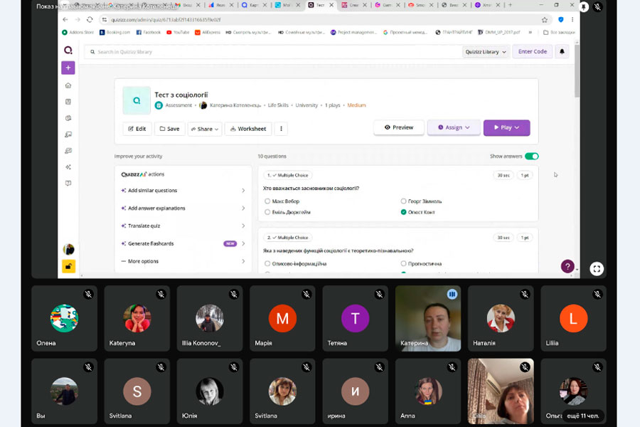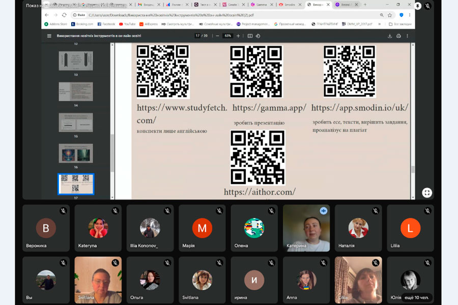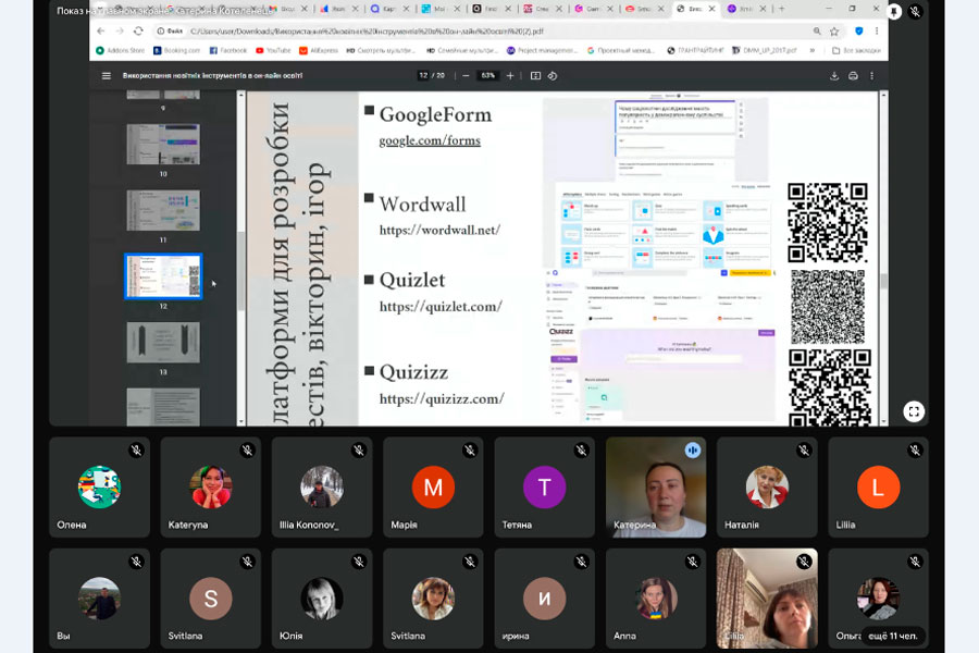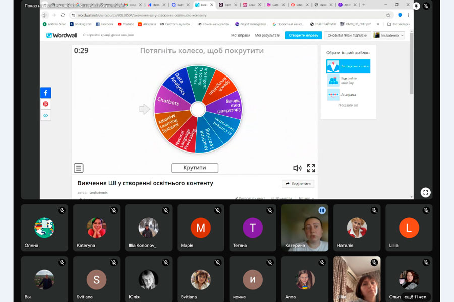 Учасники семінару дізналися про використання різних онлайн-інструментів для контролю знань здобувачів освіти, такі як інтерактивні тести, квести, інструменти для створення блок-схем, презентацій, проєктів, стимулятори, тощо.