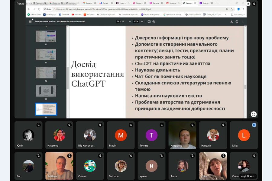 Також під час семінару спікерки поділились своїм досвідом використання ШІ у професійній діяльності, продемонстрували навчальний контент, який був створений з використанням ШІ. Стосовно плюсів та мінусів використання ШІ виникла дискусія, зокрема щодо питання використання ШІ у створені навчального контенту та академічної доброчесності. Учасники дійшли висновку, що сучасний викладач має постійно навчатися і розширення навичок використання ШІ у професійній діяльності – наразі один з важливих напрямків навчання. З одного боку, без знання цифрових інструментів навчання на ринку праці важко залишатися конкурентоспроможним серед колег. З іншого боку, викладачу ШІ допомагає бути цікавим для здобувачів освіти, яких потрібно і навчати з використанням ШІ, і вчити використовувати ШІ в навчальній і професійній діяльності.