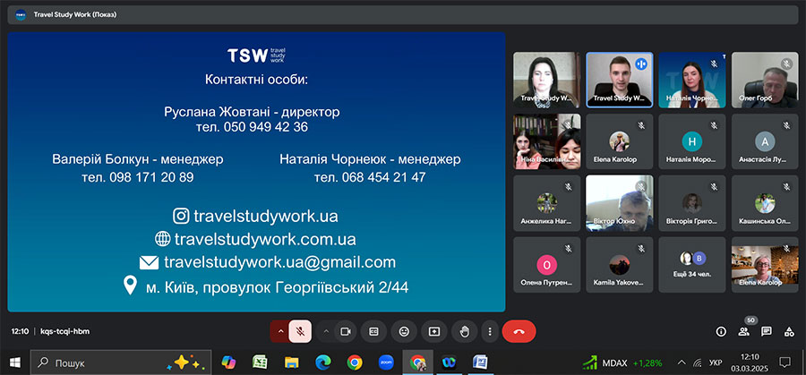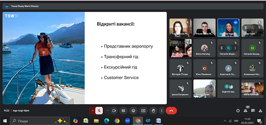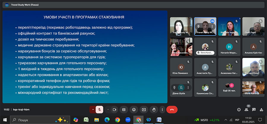 Так, 3 березня 2025 р., під час зустрічі, партнерською компанією було презентовано можливості проходження міжнародного стажування в сфері гостинності влітку 2025 року в кращих туристичних та готельно-ресторанних комплексах Болгарії, Словаччини, Туреччини, Греції, Австрії, Італії.