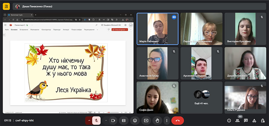 На заході звучали висловлювання українських митців і науковців про українську мову, вірші, пісні. Здобувачі освіти коледжу стали учасниками вікторини «Цікаві факти про мову», на якій спільно вирішували питання про те, як дбати про чистоту і красу рідної мови. Було цікаво і пізнавально!