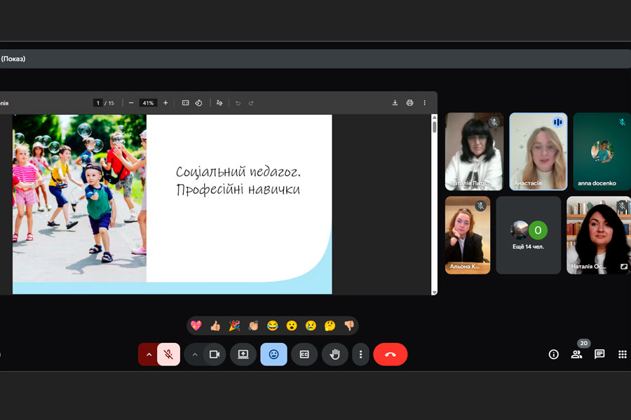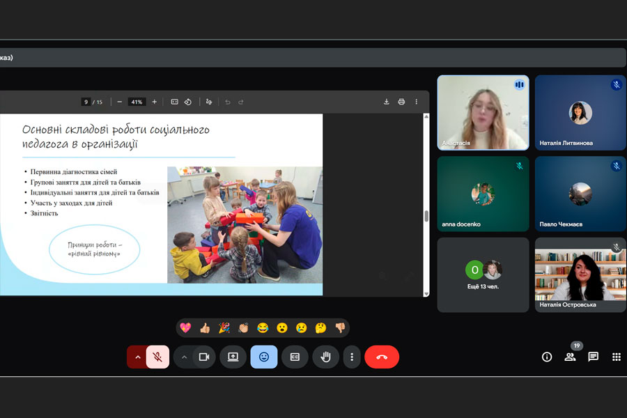 Пані Анастасія поділилася власним досвідом професійної діяльності, розповіла про особливості роботи соціального педагога в умовах сьогодення, дала практичні поради майбутнім фахівцям та надихнула студентів прикладами зі своєї щоденної роботи.