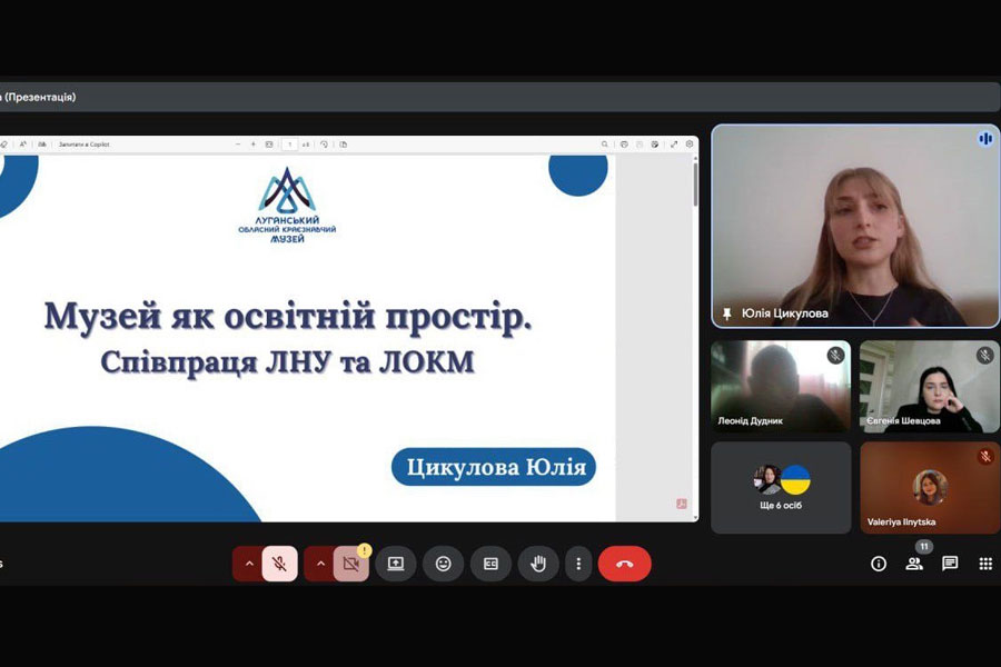 Завершуючи зустріч, Юлія Цикулова підкреслила важливість співпраці між Луганським обласним краєзнавчим музеєм та Луганським національним університетом: наукові заходи, спільні проєкти, участь здобувачів у культурному житті та проходження практики – усе це є невід’ємною частиною партнерства, яке триває навіть у найскладніші часи.